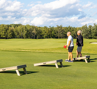 Grab your friends for some competitive cornhole fun. Reserve a board and start tossing!